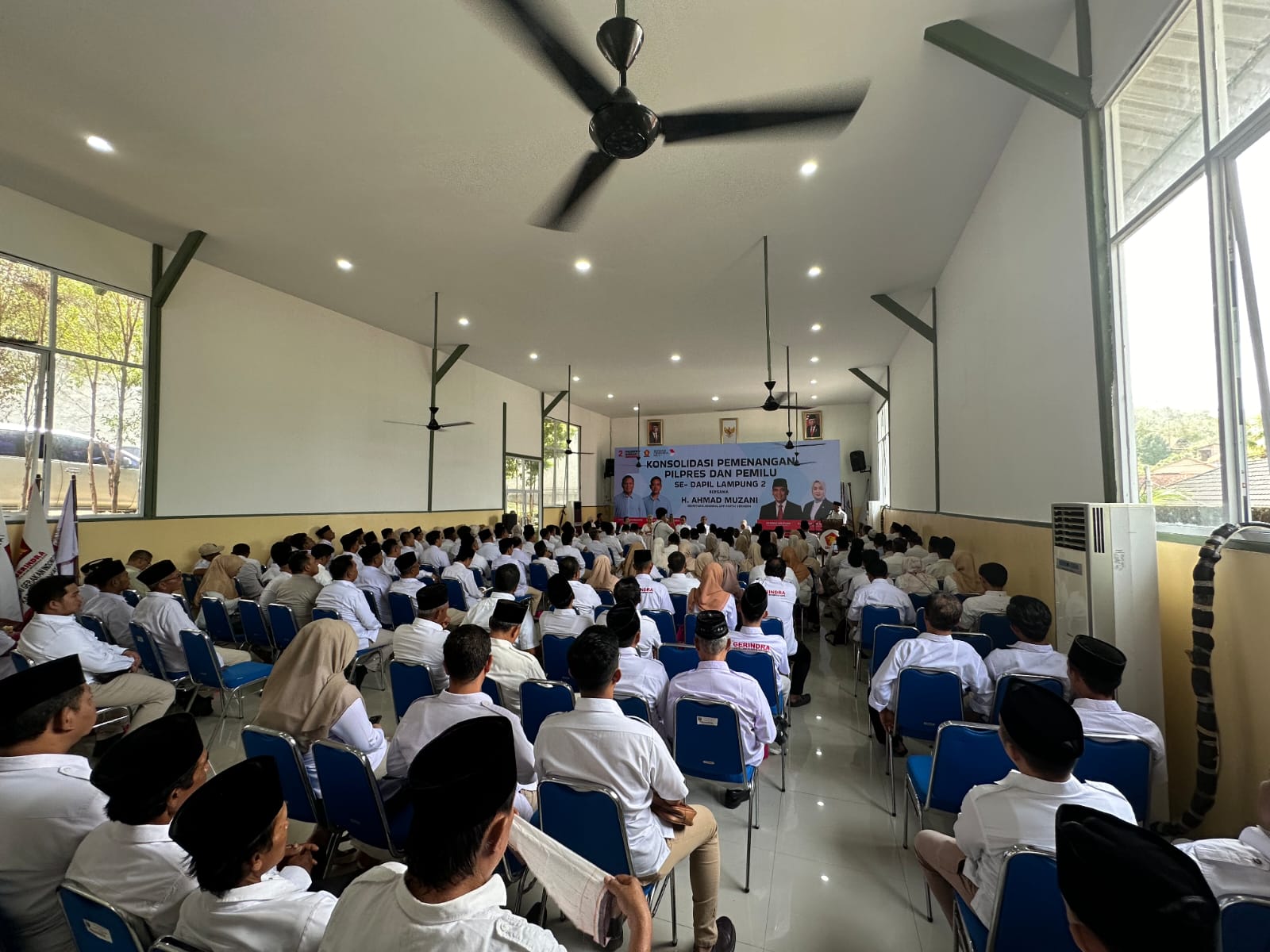 Sekjen Partai Gerindra Ahmad Muzani menghadiri konsolidasi akbar DPD Gerindra Lampung pada Jumat (8/12). Dalam sambutannya, Muzani meminta setiap kader Gerindra Lampung harus semakin masif mengkampanyekan dan mensosialisasikan program-program Prabowo-Gibran.
